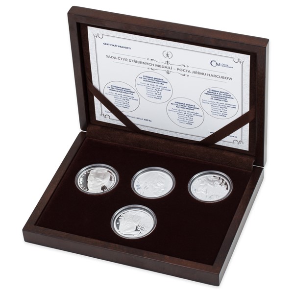 Sada čtyř stříbrných medailí Pocta Jiřímu Harcubovi proof