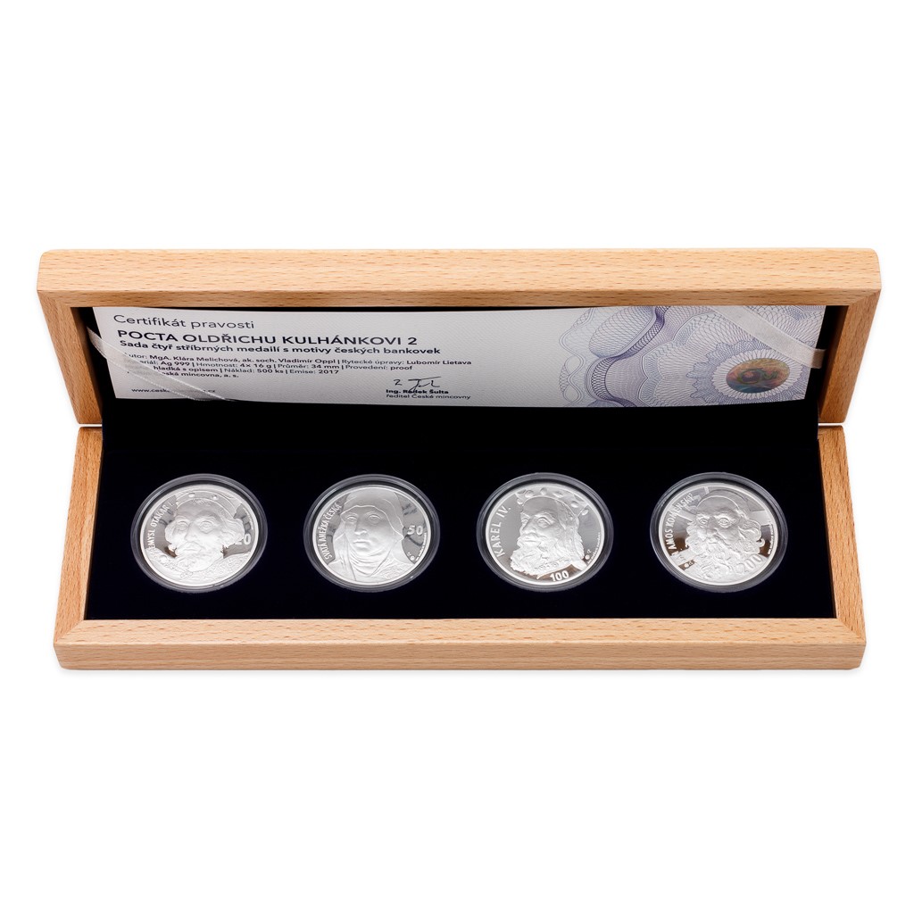 Když v roce 2013 odešel na věčnost grafik Oldřich Kulhánek, Českou mincovnu tato zpráva těžce zasáhla. Po čtyři roky totiž měla tu čest s ním pracovat na unikátním projektu – přerodu osmi českých bankovek do podoby pamětních medailí. Jako pocta zesnulému autorovi papírových platidel tehdy vyšla sada čtyř stříbrných medailí, na jejichž přípravě se stihl podílet. Protože by však byla nesmírná škoda s projektem skončit v polovině, Česká mincovna pokračovala i bez mistrovy pomoci. Nyní, o čtyři roky později, vám s hrdostí představujeme druhou stříbrnou sadu.