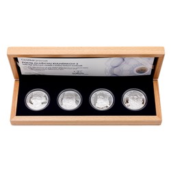 Sada čtyř stříbrných medailí je spolu s certifikátem pravosti uložena do elegantní dřevěné etue.