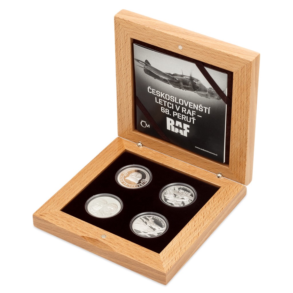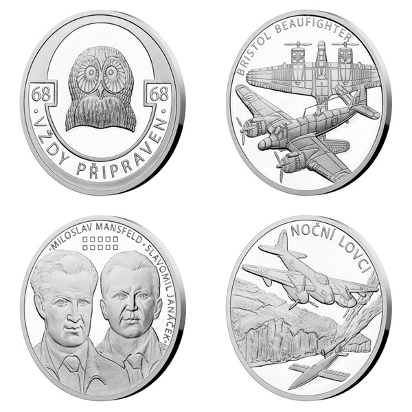 Cyklus České mincovny, který vzpomíná na naše „nebeské jezdce“, se loučí. Pátá a poslední sada čtyř stříbrných mincí vzdává hold 68. noční stíhací peruti RAF.
