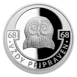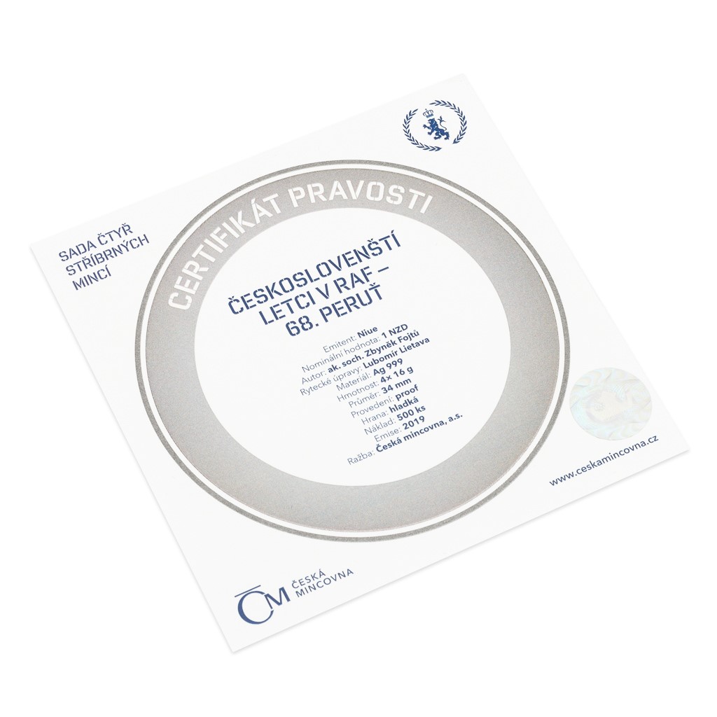 Cyklus České mincovny věnovaný československým letcům sloužícím v RAF začal vycházet u příležitosti 75. výročí bitvy o Británii. Postupně se v něm objevila tato témata – znaky československých perutí, jejich letouny, letecká esa a významné události. Řada sběratelů poukazovala na to, že vedle čtyř československých perutí – 310., 311., 312. a 313. – by si své mince zasloužila také 68. peruť. Přestože byla britská, vyznačovala se velkým počtem Čechoslováků, kteří se vyznamenali do té míry, že peruť přijala české motto „Vždy připraven“. V roce 2019 proto cyklus uzavírá právě pamětní sada věnovaná 68. peruti. Jednotlivé mince z ateliéru akademického sochaře Zbyňka Fojtů tematicky navazují na čtyři předchozí sady – reverzní strany nesou symbol perutě (sovu s českým mottem), její první skutečně účinnou noční stíhačku (Bristol Beaufighter), dvě letecká esa (pilota Miloslava Mansfelda a radarového operátora Slavomila Janáčka) a výjev z bojového nasazení (útok na střelu V-1). Společná averzní strana mincí pak náleží atributům ostrova Niue (zahraničního emitenta, který České mincovně umožňuje vydávat vlastní pamětní mince) – jménu a portrétu královny Alžběty II., nominální hodnotě 1 DOLLAR (NZD) a roku emise 2019. Tyto atributy jsou doplněny symbolikou RAF.