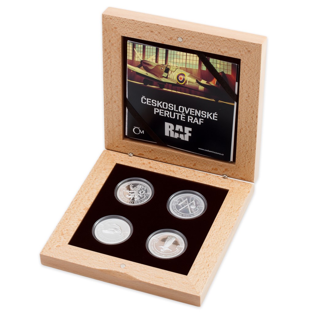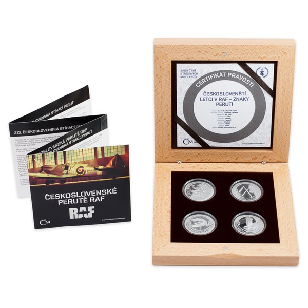 Sada čtyř stříbrných mincí Českoslovenští letci v RAF - Znaky perutí proof