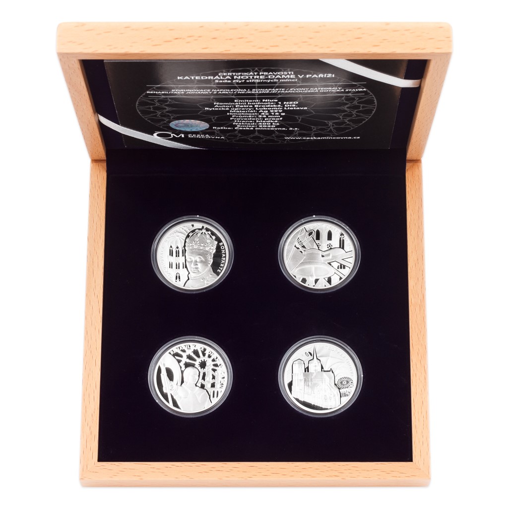Když v roce 2019 zpustošil pařížskou katedrálu Notre-Dame požár, osud Matky Boží nenechal nikoho chladným. U příležitosti prvního výročí ničivé pohromy vychází sada čtyř stříbrných mincí České mincovny, která je připomínkou bohaté historie svatostánku v srdci Paříže.
