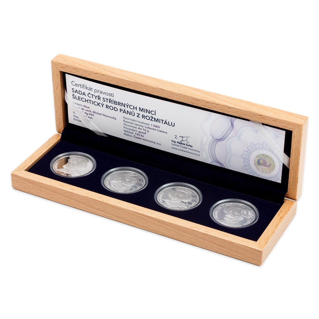 Sada čtyř stříbrných mincí Šlechtický rod Pánů z Rožmitálu proof