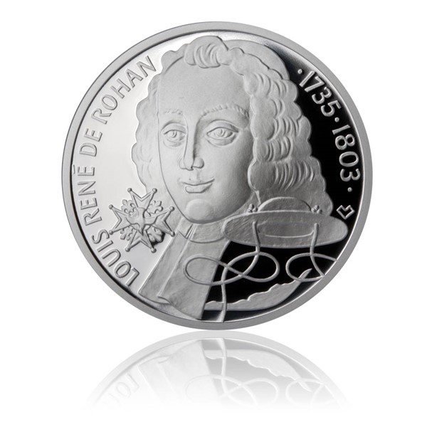 Louis René de Rohan, 1735–1803, kardinál římsko-katolické církve, vedle portrétu je umístěn kardinálský klobouk dokládající jeho církevní hodnost a klenot řádu Sv. Ducha, jehož byl nositelem.