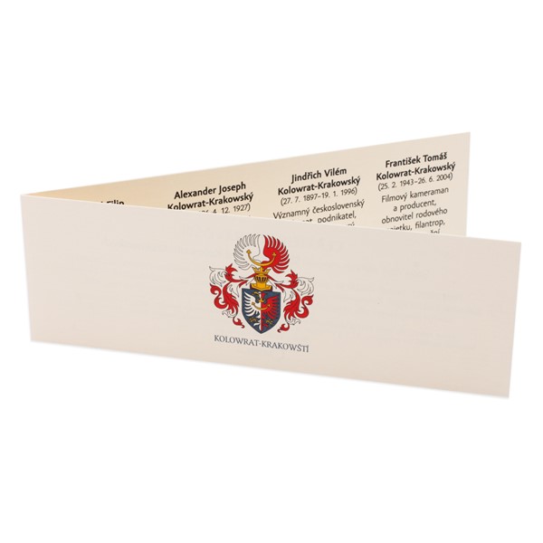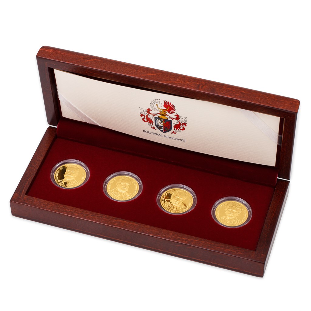 Exkluzivní sadu věnovanou rodu Kolowrat-Krakowských tvoří čtyři pamětní medaile z ryzího zlata o hmotnosti jedné čtvrtiny unce. Vznikla na základě soukromé zakázky potomků šlechtického rodu, část těchto sad však byla s jejich laskavým svolením připravena do prodeje. Numismatikům a sběratelům uměleckých děl reflektujících národní dějiny se tak aktuálně nabízí jedinečná příležitost uložit své peníze do klenotů se zajímavým investičním potenciálem. Každá sada medailí je opatřena číslovaným certifikátem a je uložena v luxusní dřevěné etuji. Neváhejte s nákupem, na trh se dostane pouhých 35 sad!