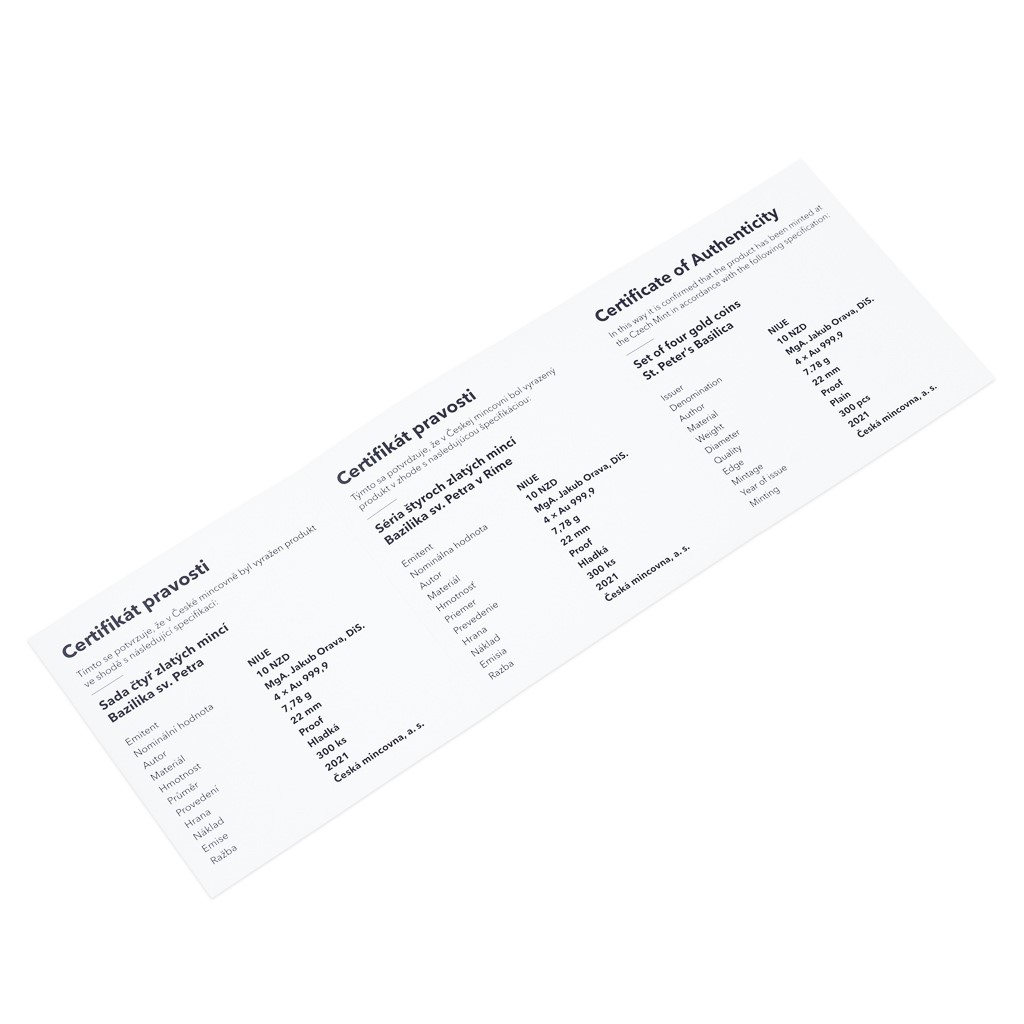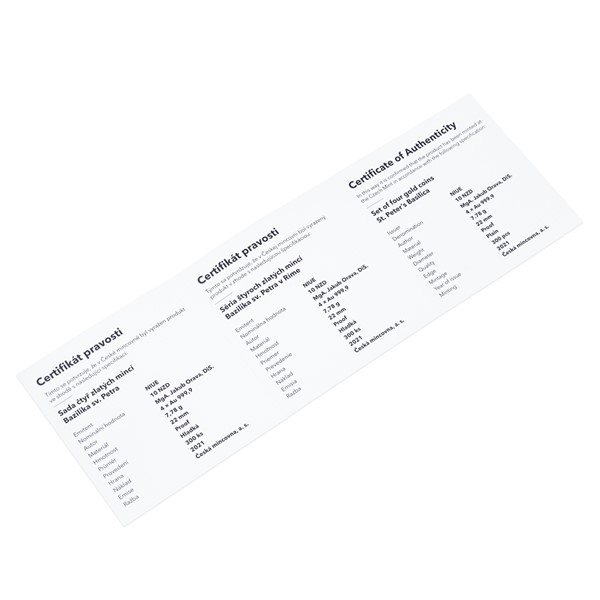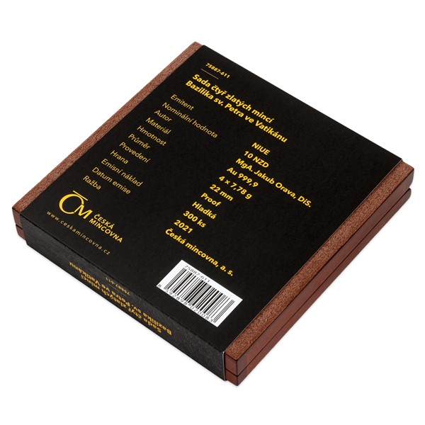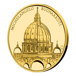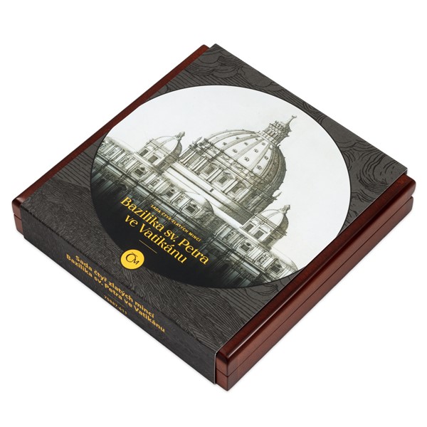 Volný cyklus České mincovny, který je věnován slavným svatostánkům, dosud představil pražskou katedrálu svatého Víta a pařížskou katedrálu Notre-Dame. Třetí sada čtyř zlatých mincí vzdává hold vatikánské bazilice svatého Petra.