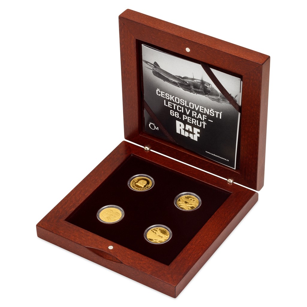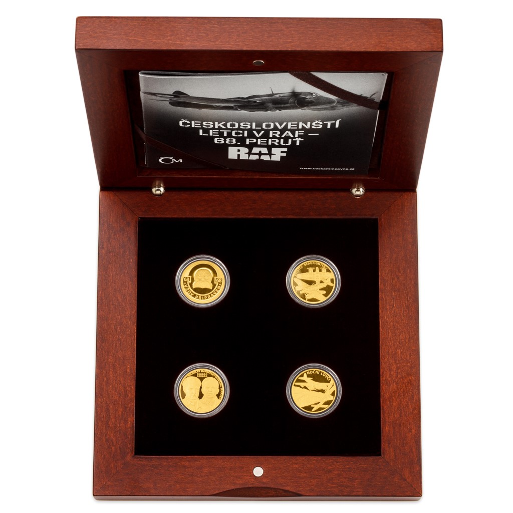 Sada čtyř zlatých mincí Českoslovenští letci RAF - 68. noční stíhací peruť proof