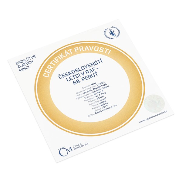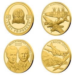 Pátá sada České mincovny z cyklu, který vzdává hold našim „nebeským jezdcům“, je zároveň sadou poslední. Čtveřice zlatých mincí připomíná osudy 68. noční stíhací perutě RAF.