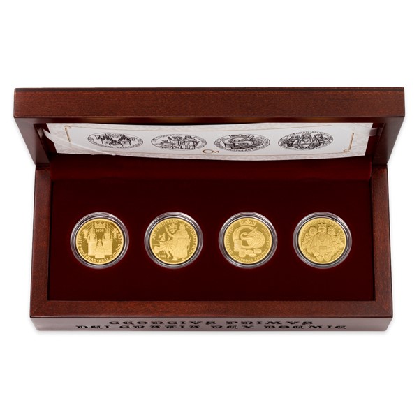 Sada čtyř zlatých mincí Doba Jiřího z Poděbrad proof