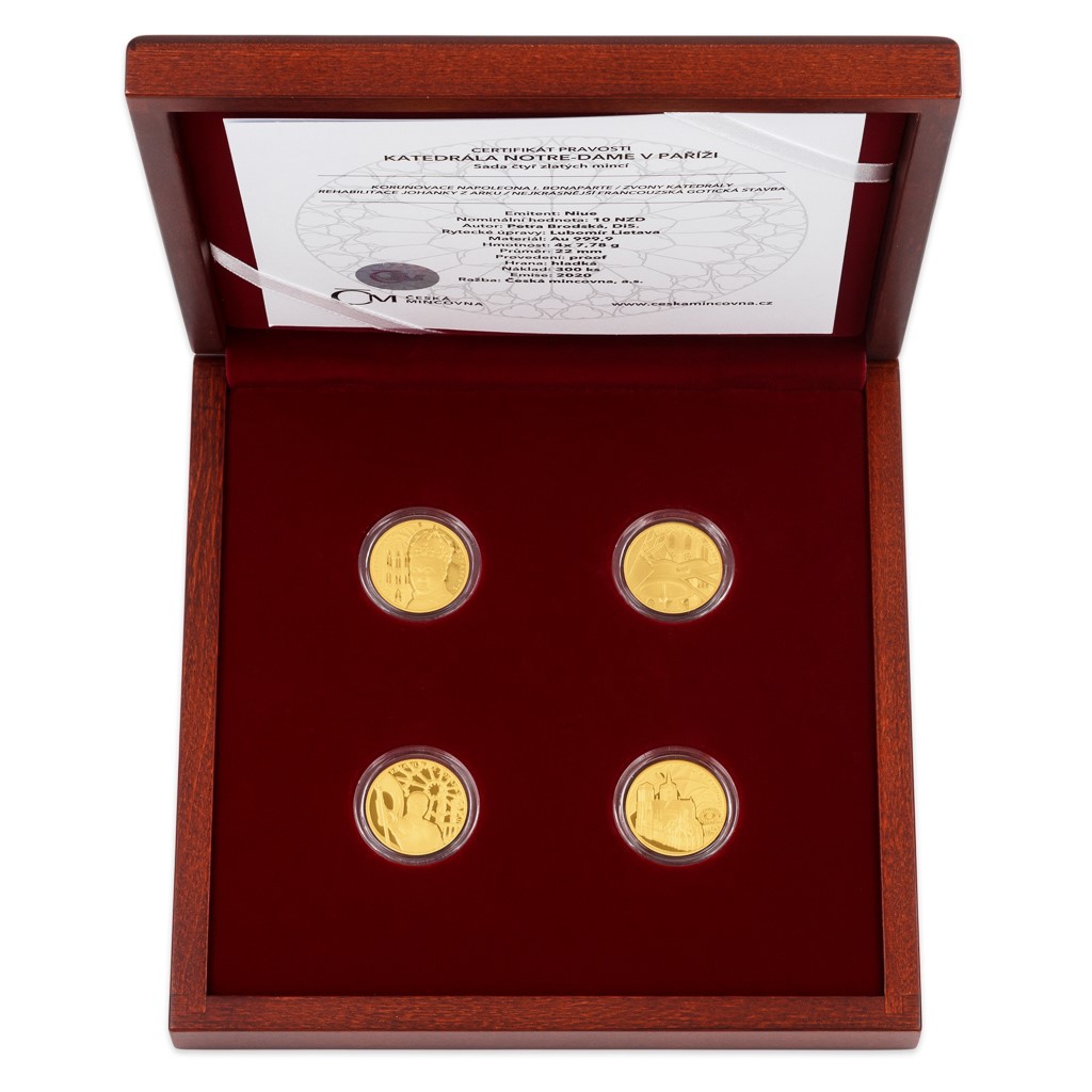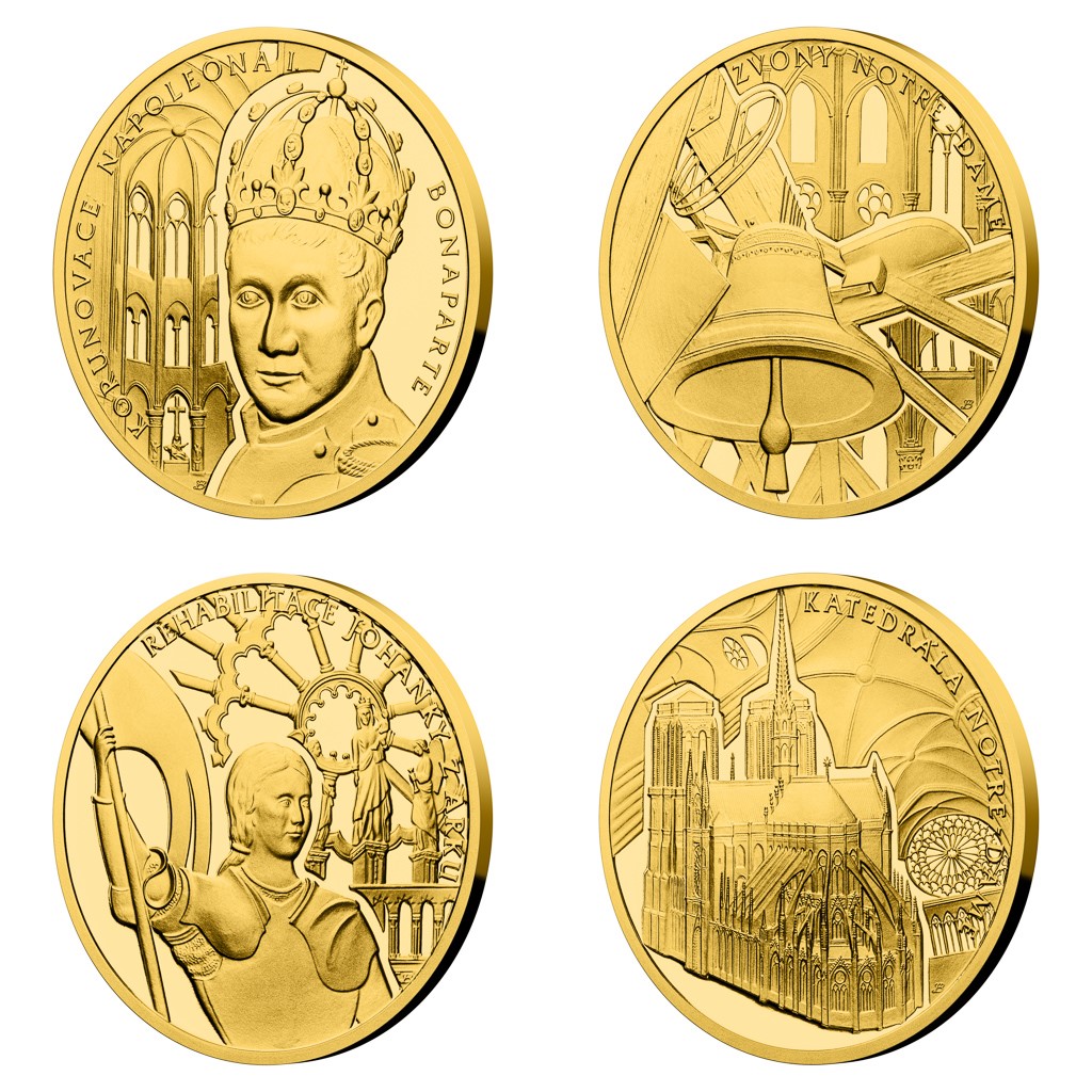 V roce 2020 si připomínáme první výročí požáru, který zpustošil pařížskou katedrálu Notre-Dame. Osud svatostánku, který je skutečným srdcem historické Paříže, nenechal nikoho chladným a jako vzpomínka na bohatou historii Matky Boží vychází sada čtyř zlatých mincí České mincovny.