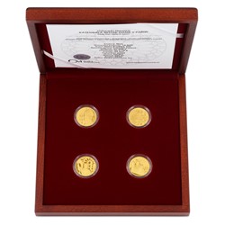 Sada čtyř mincí je uložena do luxusní dřevěné krabičky.