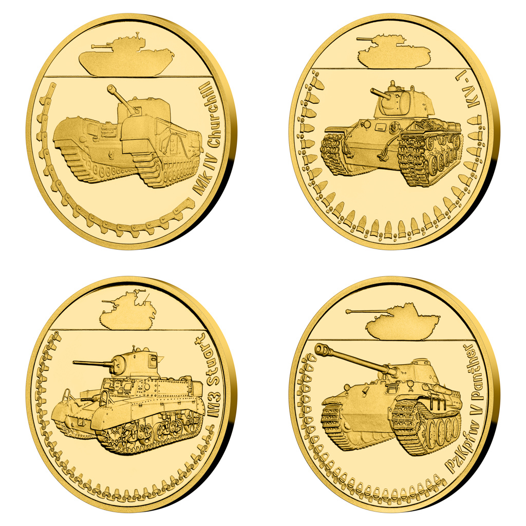 Ty nejznámější tanky bojující na všech frontách druhé světové války představuje druhá sada čtyř zlatých mincí: