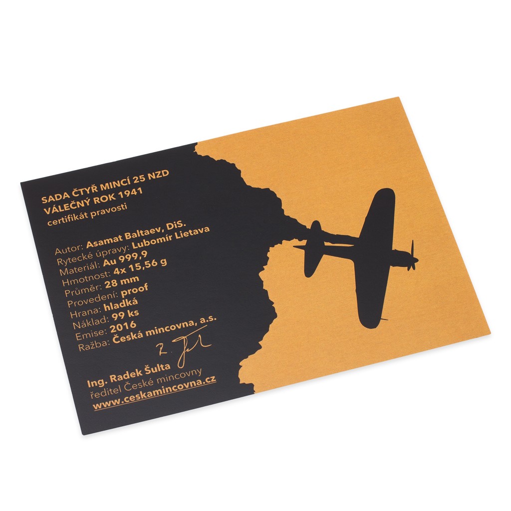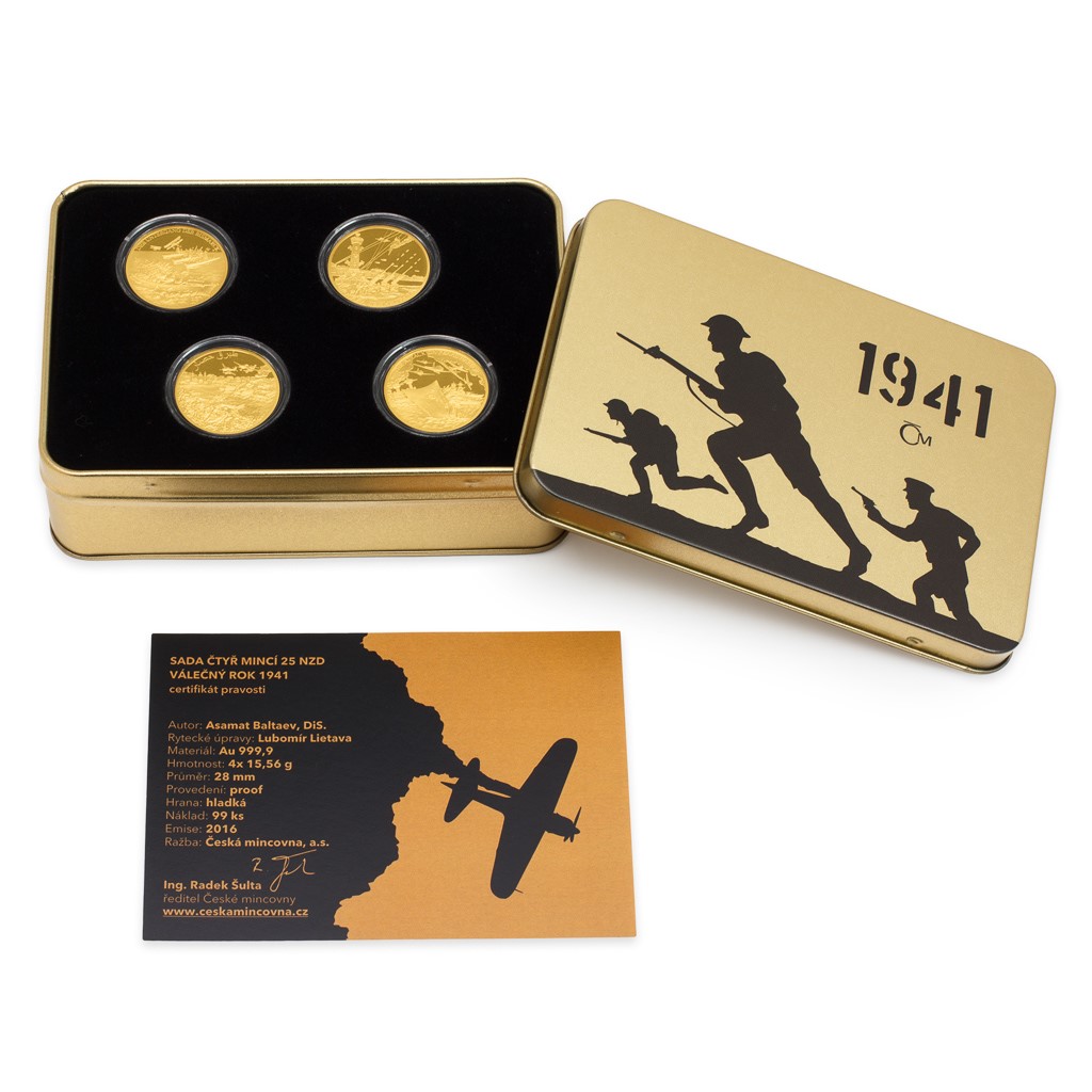 Po celý rok 2016 vydávala Česká mincovna pamětní mince věnované 75. výročí stěžejních událostí válečného roku 1941. Všechny čtyři dynamické motivy – potopení Bismarcku, obléhání Leningradu, boj o Tobrúk a útok na Pearl Harbor – si nyní můžete vychutnat v ucelené sadě zlatých mincí o větší hmotnosti a větším průměru.