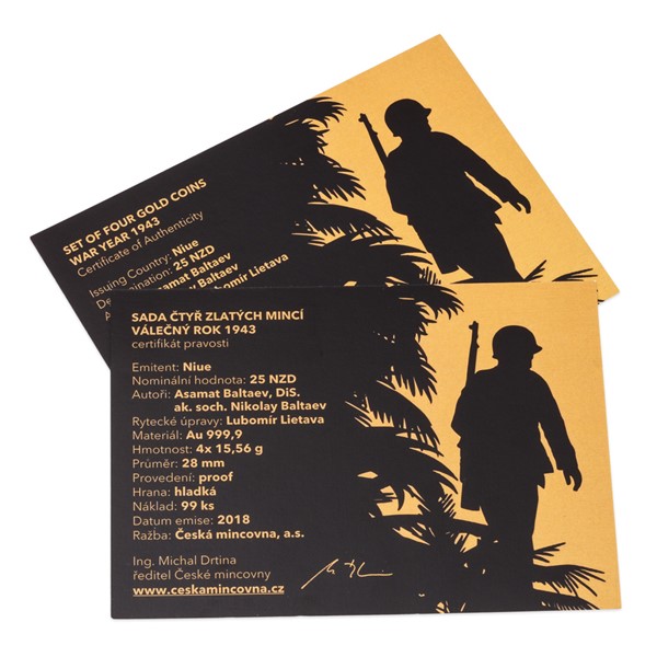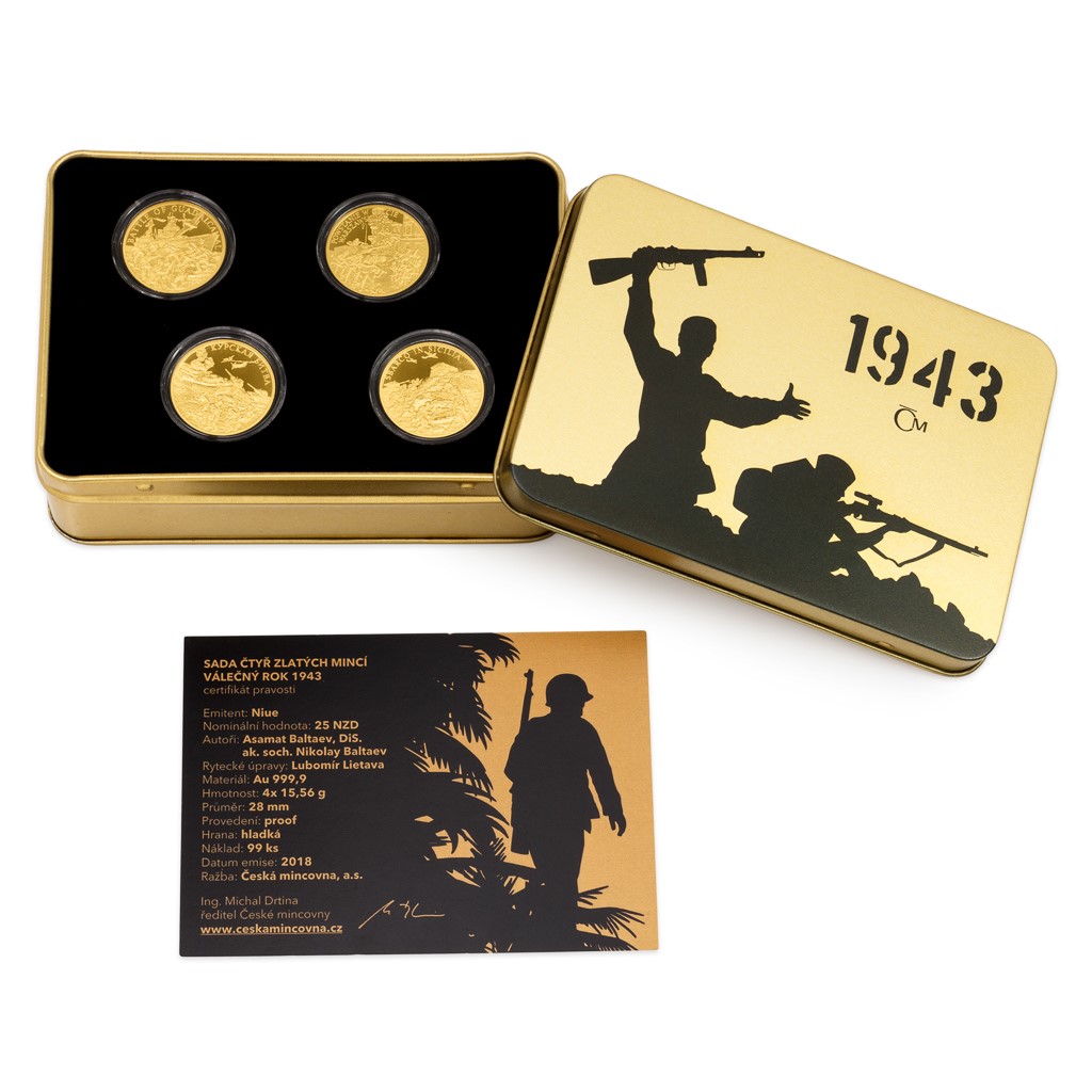 Sada čtyř zlatých mincí Válečný rok 1943 proof