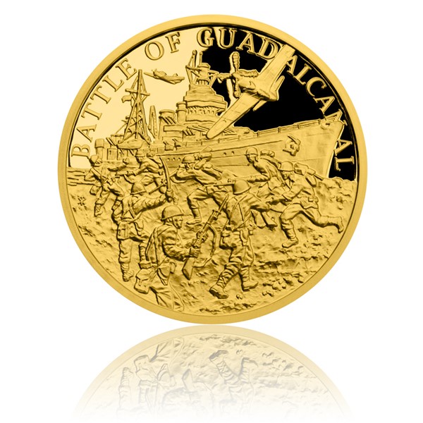 - První mince je věnována bitvě o Guadalcanal – první ofenzivě Spojenců v Tichomoří. Šest měsíců trvající střet amerických a japonských sil na Šalamounových ostrovech skončil rozhodujícím vítězstvím USA a císařství bylo nuceno přejít do defenzivy.