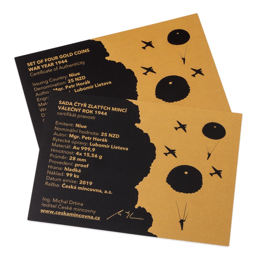 Roku 1944 zahájili Spojenci největší ofenzivu, jakou kdy svět spatřil. Jejich cíl byl jednoduchý, ale ne snadný – pomoci Sovětskému svazu v boji a osvobodit Evropu od nacistické tyranie. Zároveň pokračovali v tažení na jihu a v Pacifiku. Ucelená sada čtyř zlatých půluncových mincí České mincovny z volného cyklu Válečný rok připomíná 75. výročí těchto klíčových událostí: