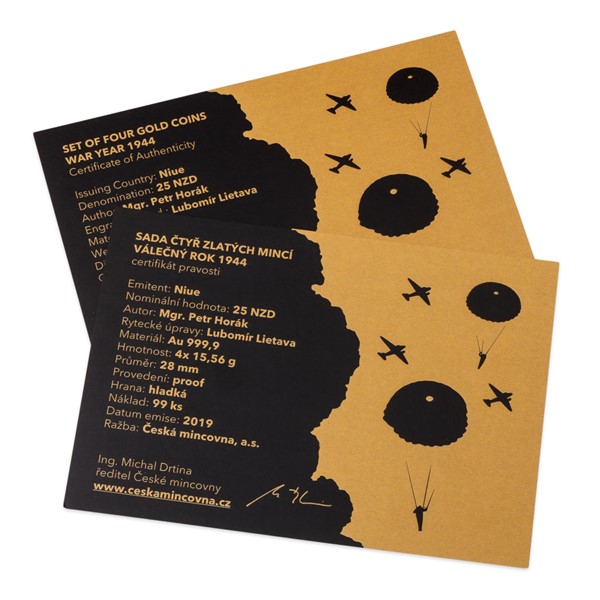 Sada čtyř zlatých mincí Válečný rok 1944 proof