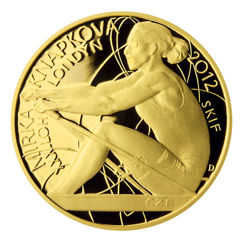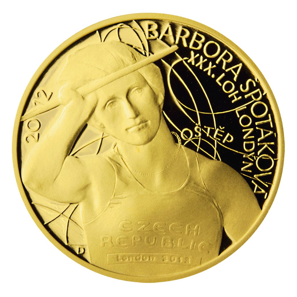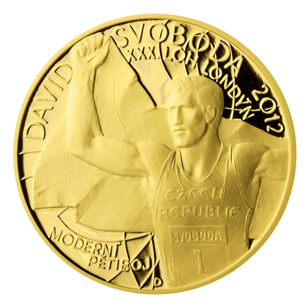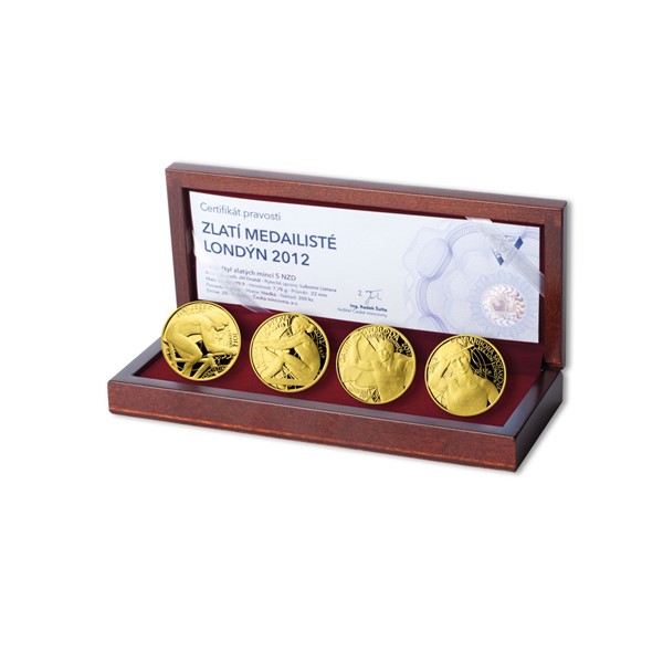 Sada čtyř zlatých mincí s motivy českých sportovců, kteří zvítězili na XXX. letních olympijských hrách a XIV. letních paralympijských hrách v Londýně, nese na společné averzní straně stylizovaný kubistický motiv, připomínající design oblečení sportovců a povinné náležitosti mince – portrét královny Alžběty, nominál 5 NZD, Niue Island a rok vydání 2013. Na reverzních stranách se objevují postavy medailistů při sportu – David Svoboda, vítěz v moderním pětiboji, Barbora Špotáková - hod oštěpem, Mirka Knapková – skif a Jiří Ježek – paralympijský vítěz v cyklistice.