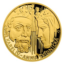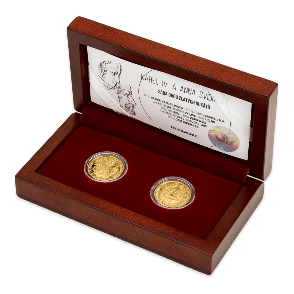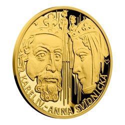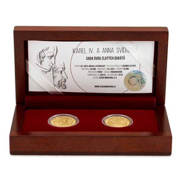 Po emisi věnované Jiřímu z Poděbrad a Johaně z Rožmitálu vzdává sada dvou zlatých dukátů České mincovny z cyklu Královské dvojice hold Karlu IV. a Anně Svídnické.