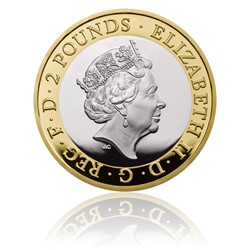 Bikolorová mince (okruží je pozlaceno) britské mincovny je dílem Rhyse Morgana. Reverzní straně dominuje znak RAF, který předkládá orla, královskou korunu a latinské heslo „PER ARDUA AD ASTRA“ – přes překážky ke hvězdám. V opisu je pak uvedeno 1918–2018, THE 100TH ANNIVERSARY OF THE ROYAL AIR FORCE – 100. výročí Královského letectva. Averz mince náleží atributům emitenta, kterým je Velká Británie, a nese profil panovnice Alžběty II., text „ELIZABETH II D G REG F D“ (Alžběta II., z Boží milosti královna, ochránkyně víry) a nominální hodnotu TWO POUNDS (GBP).