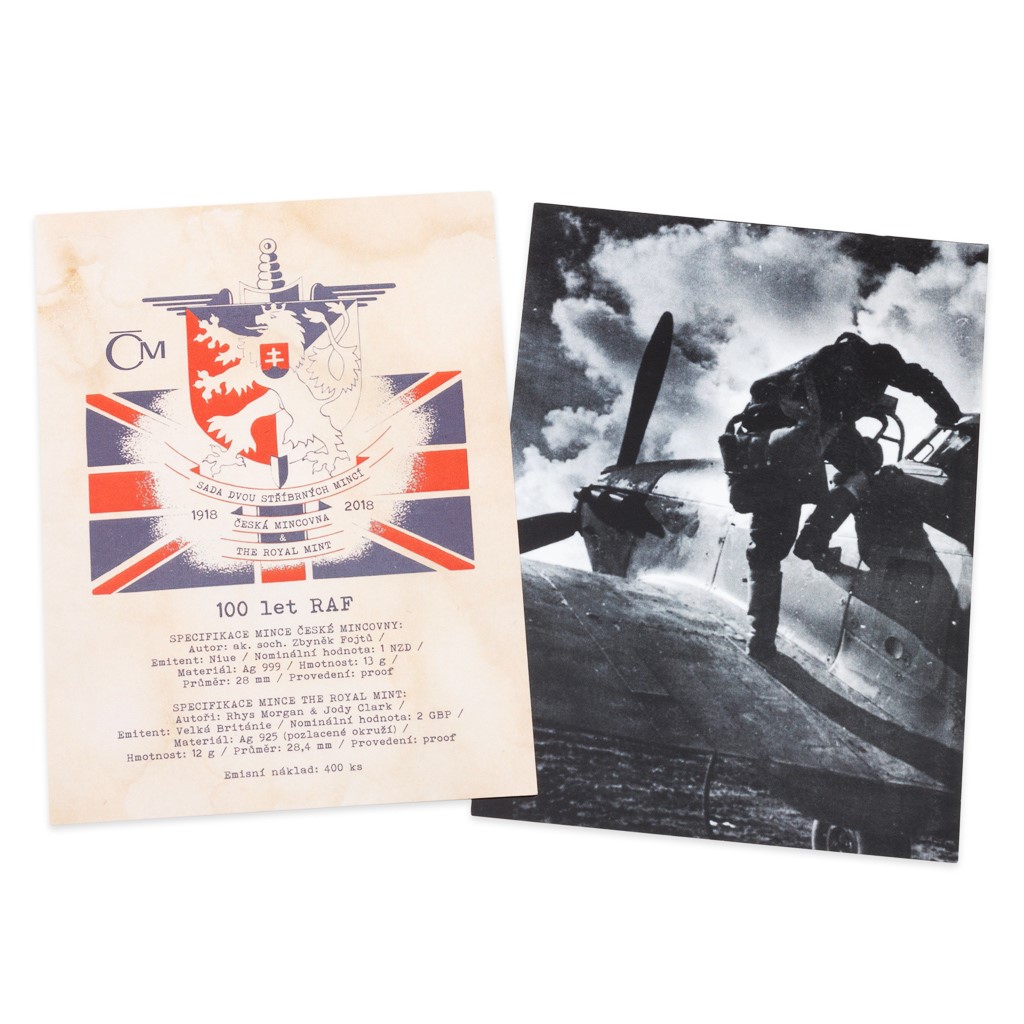 Britské Královské letectvo vzniklo roku 1918 a stalo se první nezávislou vzdušnou silou na světě. Protože dějiny Velké Británie a Československa se ve 20. století osudově protnuly, vychází u příležitosti 100. výročí založení RAF pamětní sada. Skládá se z jedné stříbrné mince České mincovny a jedné stříbrné mince britské mincovny The Royal Mint.