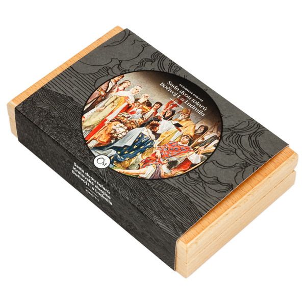 Dvojice tolarů je uložena do elegantní dřevěné krabičky, jejíž víčko zdobí osobnosti vládnoucího páru symbolizované šachovými figurkami. Součástí balení je také ilustrovaný certifikát pravosti s průvodním slovem autora.