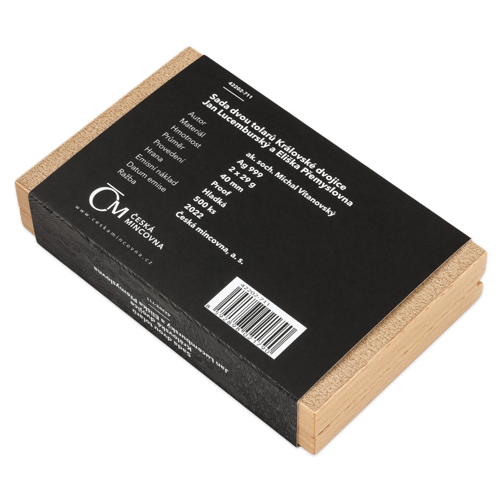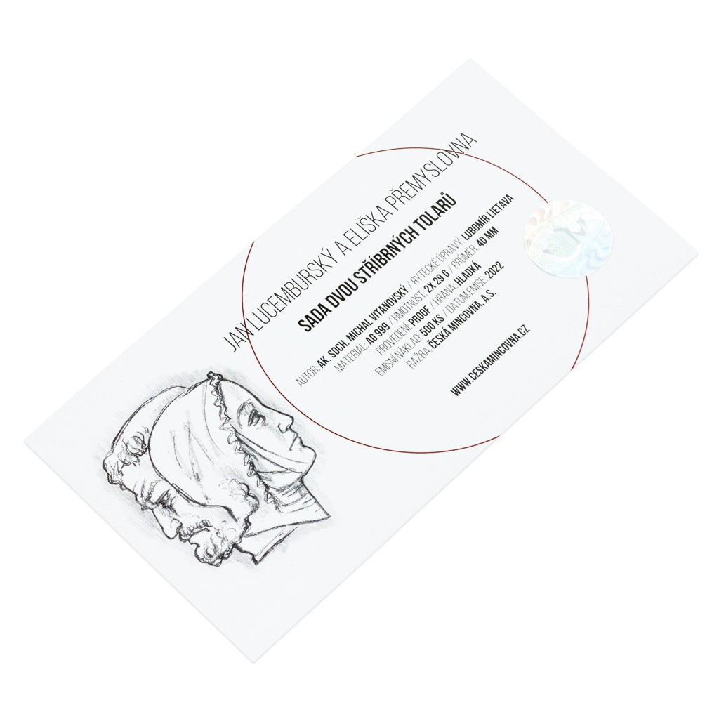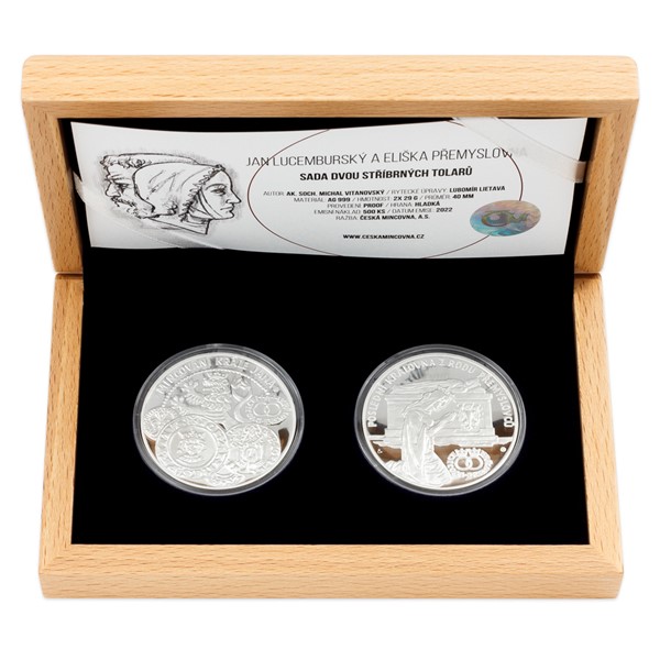 Pátá sada dvou stříbrných tolarů z cyklu České mincovny Královské dvojice, který vzdává hold významným historickým párům, je věnována Janu Lucemburskému a Elišce Přemyslovně.