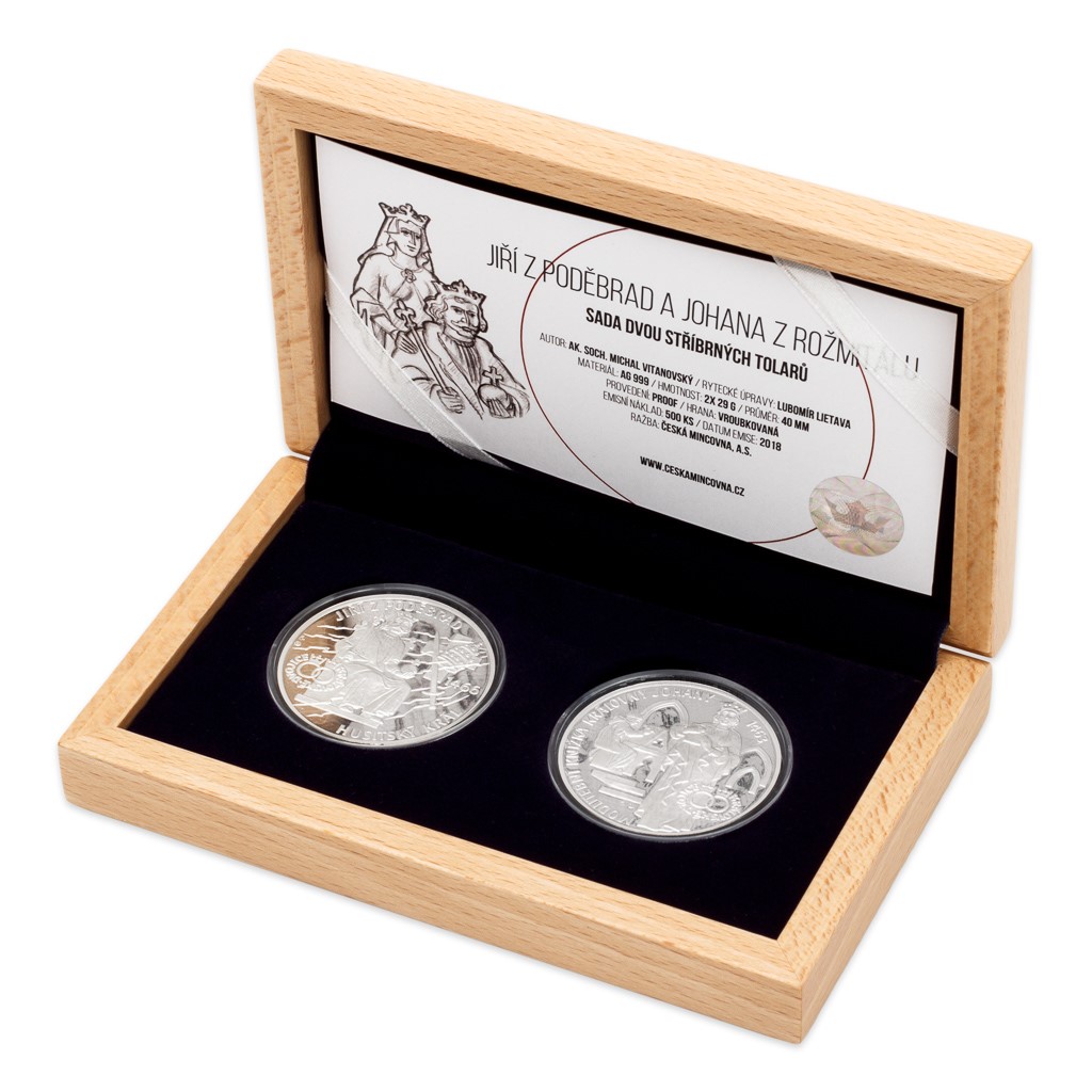 Sada dvou tolarů Královské dvojice - Jiří z Poděbrad a Johana z Rožmitálu proof
