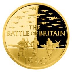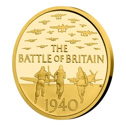 Reverzní strana mince Královské mincovny, jejímž autorem je výtvarník Gary Breeze, předkládá charakteristický válečný výjev – piloti RAF spěchají ke svým strojům, aby odrazili další z útoků nacistické Luftwaffe. Averzní strana mince pak náleží atributům Velké Británie – tj. nominální hodnotě 25 POUNDS (GBP), portrétu královny Alžběty II. a textu „ELIZABETH II D G REG F D“ (Alžběta II., z Boží milosti královna, ochránkyně víry).
