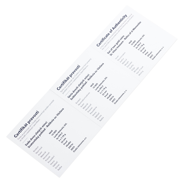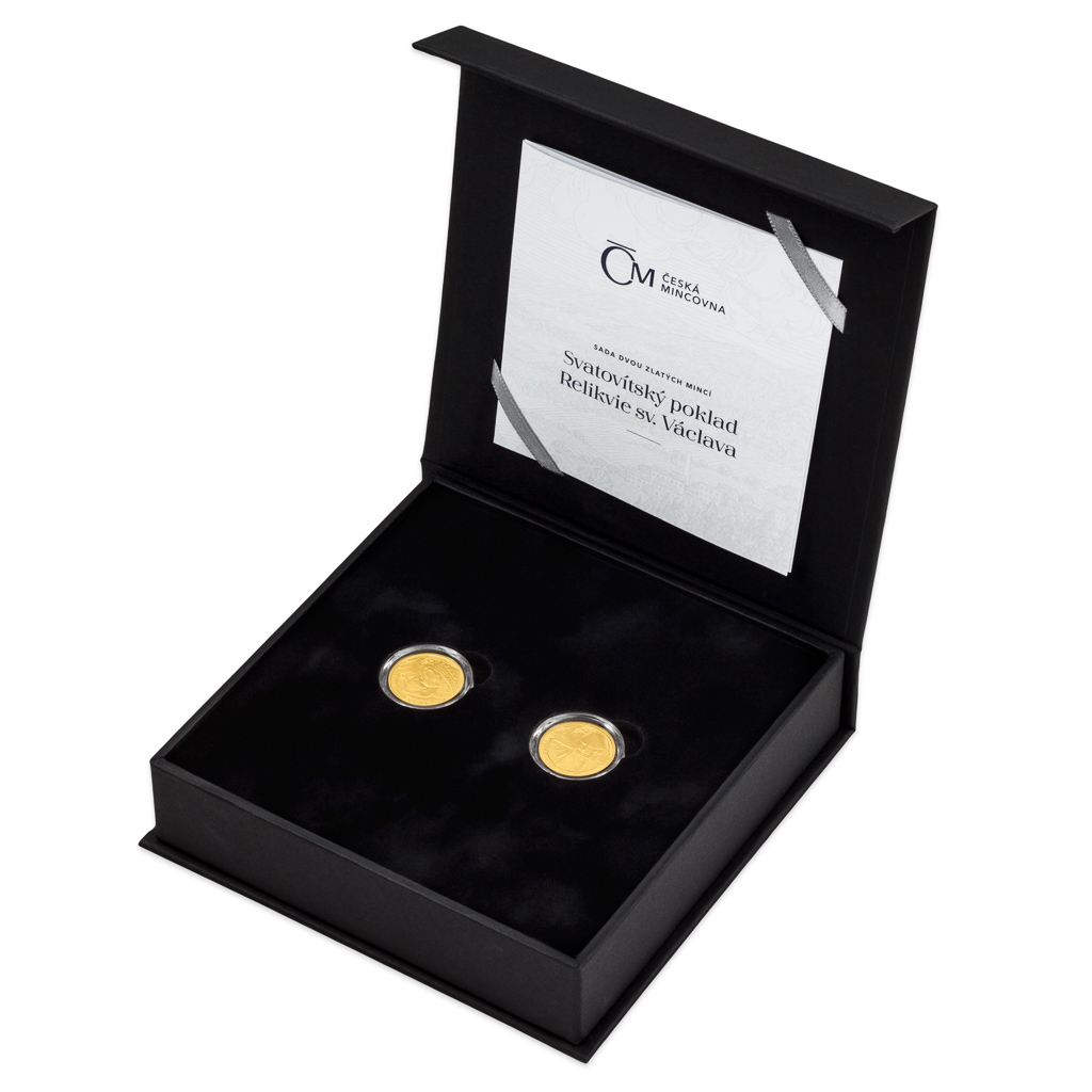 Druhá sada dvou zlatých mincí České mincovny z volného cyklu, který je věnován Svatovítskému pokladu, připomíná význam relikvií svatého Václava.