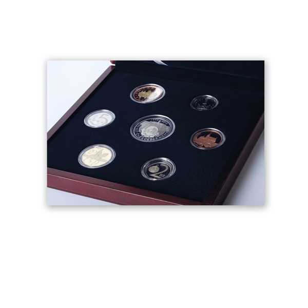 Ročníková sada oběžných mincí obsahuje české mince v leštěném provedení, které jsou raženy v daném roce. Sada oběživa je prestižním sběratelským předmětem zejména pro své vysoce kvalitní zpracování. Krásu českých oběžných mincí podtrhuje decentní dřevěná etue s číslovaným certifikátem, který je vyroben ve Státní tiskárně cenin. Sady mincí v kvalitě proof jsou navíc doplněny pamětní stříbrnou medailí, jejímž autorem je medailér Jaroslav Bejvl. Česká národní banka je centrální bankou České republiky. Vznikla 1. 1. 1993 rozdělením Státní banky československé a sídlí v Praze Na Příkopě. Pečuje o cenovou stabilitu, určuje měnovou politiku, vydává bankovky a mince, řídí peněžní oběh, poskytuje bankovní služby pro stát a hlídá další důležité funkce. Česká měna vznikla v únoru roku 1993. Bankovky vydává Státní tiskárna cenin a oběžné mince razí Česká mincovna. Autory mincí a bankovek jsou významní čeští výtvarníci.