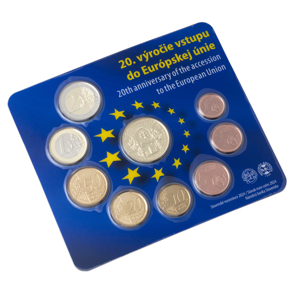 V ucelené sadě najdete všechny platné oběžné euromince, které v roce 2024 vydala Národná banka Slovenska a vyrazila slovenská Mincovňa Kremnica. Jedná se o nominální hodnoty 1, 2, 5, 10, 20 a 50 c a 1 a 2 €, které jsou doplněny pamětním žetonem. Ten připomíná vstup Slovenska do Evropské unie.