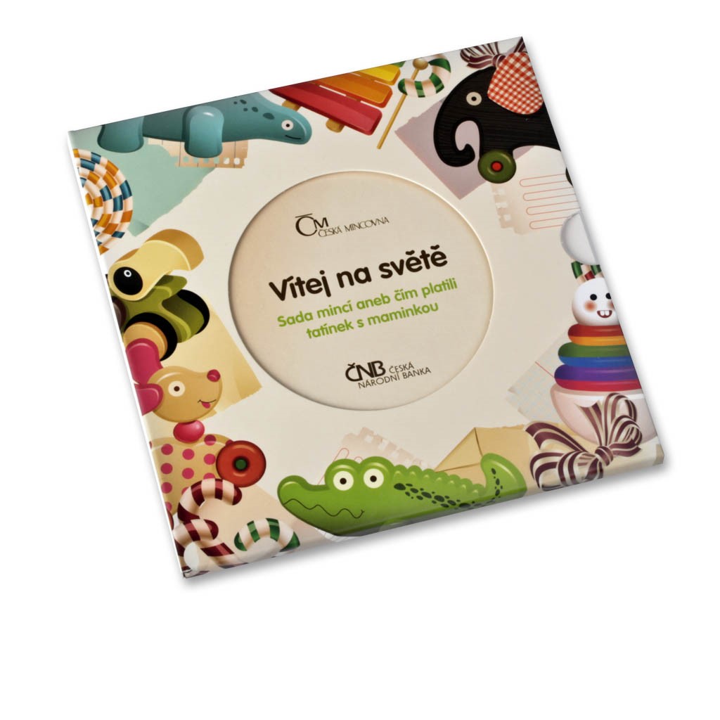 Ročníková sada oběžných mincí k narození dítěte obsahuje standardní české mince platné v daném roce, které neprošly oběhem. Mince v nominálních hodnotách 1, 2, 5, 10, 20 a 50 Kč jsou spolu s originálním žetonem k dané tematice zataveny do fólie ve čtvercové lakované „knížečce“. Titulní stranu nesoucí název „Vítej na světě“ a podtitul „Sada mincí, aneb čím platili tatínek s maminkou“ dotváří motiv hraček ve čtvercovém výřezu. Alternativně je však možné ji nahradit fotografií dítěte, kterou si dodá zákazník. Oběžné mince roku 2012 vložené ve skládačce doplňuje originální žeton z materiálu Nordic Gold (slitina CuAl5Zn5Sn1). Na averzní straně je vyobrazeno dítě, ležící na bříšku na přebalovacím pultu, s napřaženou ručičkou a chrastítkem. Motiv uzavírá opis „k narození dítěte“. Na reverzní straně je kompozice hraček, doplněná v opise letopočtem „2012“. Na vnitřní stranu zadního listu skládačky je možné zapsat do rubriky „Můj první den“ údaje o dítěti – jméno, datum narození, hmotnost, délku, barvu očí, barvu vlasů a věnování nebo vzkaz. Limitovaný náklad 10 000 kusů.