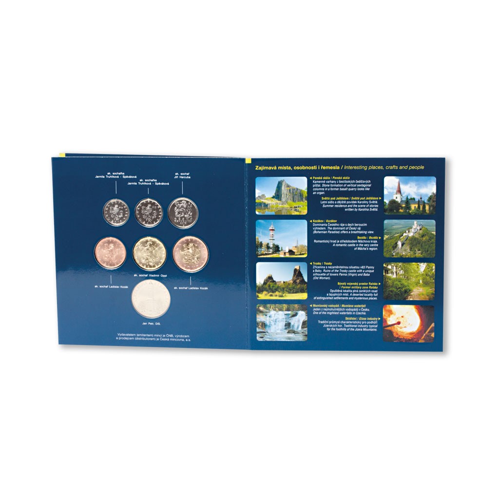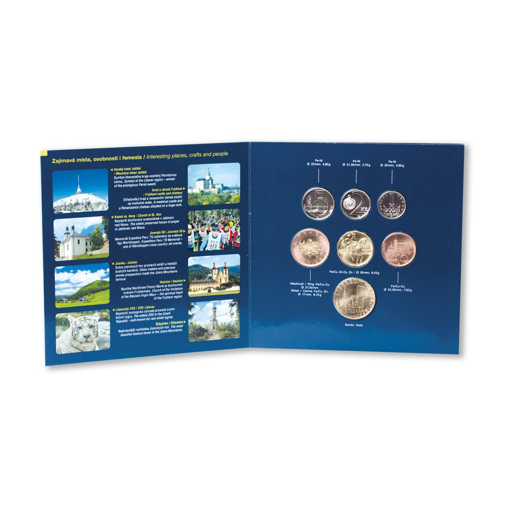 Ročníková sada oběžných mincí obsahuje standardní české mince platné v daném roce, které neprošly oběhem. Mince v nominálních hodnotách 1, 2, 5, 10, 20 a 50 Kč jsou spolu s originálním žetonem k dané tematice zataveny do fólie ve čtvercové lakované skládačce ilustrované fotografiemi zajímavých míst kraje s popisy.