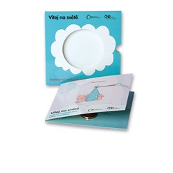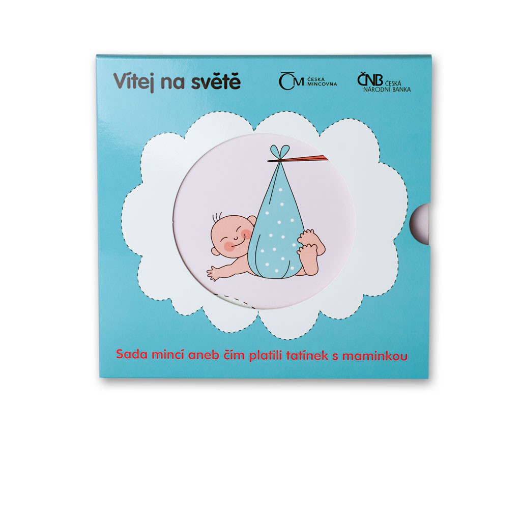 Ročníková sada oběžných mincí k narození dítěte obsahuje standardní české mince platné v daném roce, které neprošly oběhem. Mince v nominálních hodnotách 1, 2, 5, 10, 20 a 50 Kč jsou spolu s originálním žetonem k dané tematice zataveny do fólie ve čtvercové lakované „knížečce“ laděné do odstínů modré a růžové barvy. Titulní stranu nesoucí název „Vítej na světě“ a podtitul „Sada mincí, aneb čím platili tatínek s maminkou“ dotváří motiv čápa s miminkem v kruhovém výřezu. Alternativně je však možné ji nahradit fotografií dítěte, kterou dodá zákazník.