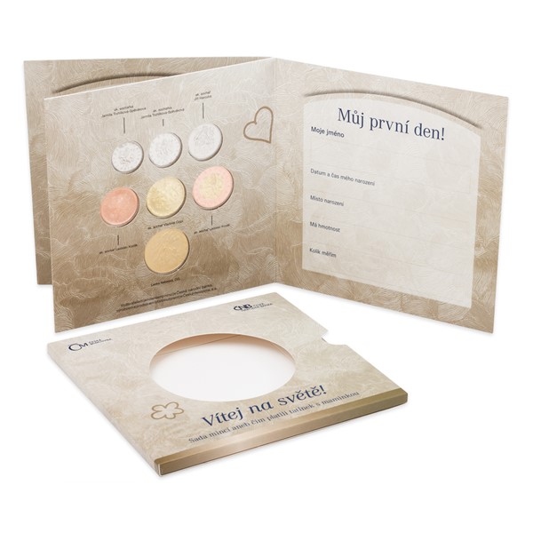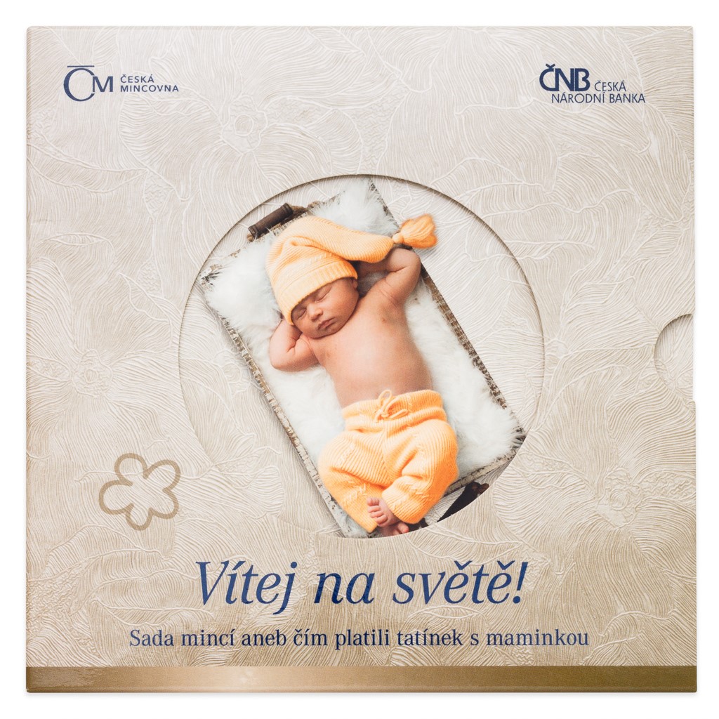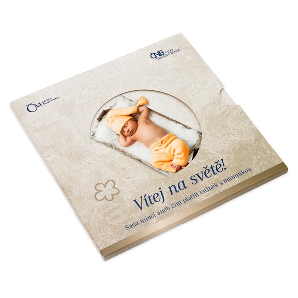 Pro tento vzácný okamžik připravila Česká mincovna speciální Sadu oběžných mincí Narození dítěte 2016, která v sobě ukrývá oběživo, jež bylo vyraženo roku 2016. V blistru s nádherným tématem spícího novorozeněte naleznete všechny aktuální české mince v nominálních hodnotách 1, 2, 5, 10, 20 a 50 Kč a navíc půvabný dárkový žeton. Ten navrhla Lenka Nebeská, DiS. a na averzu jej zdobí miminko spící v šátku spolu s letopočtem 2016. Na reverzu pak zpracovala motiv čápa s uzlíkem v zobáku, oblíbenou symboliku vztahující se k příchodu potomka na svět.