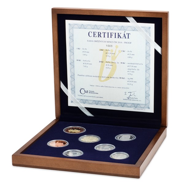 Česká mincovna penězům rozumí a užívá si možnost je hýčkat. I v roce 2016 proto všechny oběžné mince vyrazila v mimořádné kvalitě proof a uložila je do luxusní dřevěné etuje. Zároveň je doplnila něčím výjimečným – stříbrnou pamětní medailí, kterou zdobí motiv 50Kč bankovky se svatou Anežkou Českou.
