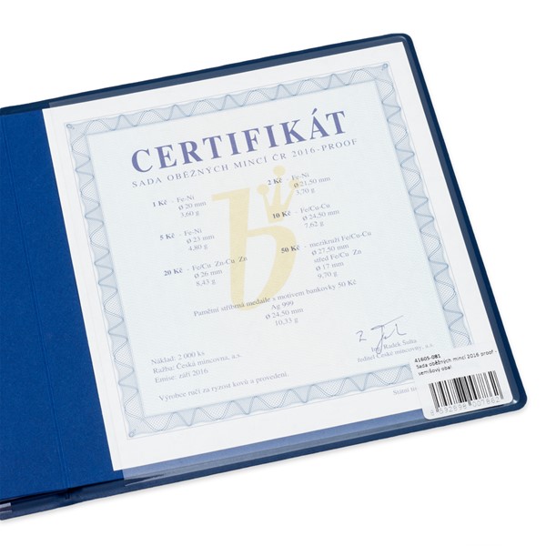 Třetím specifickým rysem této sady je elegantní balení. Barva kazety se semišovým povrchem je každý rok obměňována a tentokrát přišla řada na tmavě modrou. Její nedílnou součástí je také certifikát ze Státní tiskárny cenin, který obsahuje detailní technické specifikace jednotlivých ražeb.
