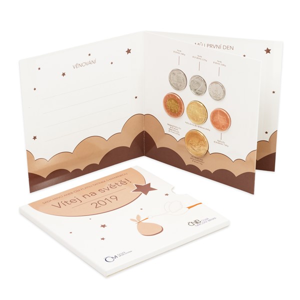 Pro tento účel vznikla výroční sada oběžných mincí – obsahuje všechny platné kovové mince s nominálními hodnotami 1, 2, 5, 10, 20 a 50 Kč a s vyraženým letopočtem 2019, které vydala Česká národní banka a vyrobila Česká mincovna z Jablonce nad Nisou. Šestici mincí, které neprošly oběhem, doplňuje ještě pamětní žeton, jehož autorkou je nadaná medailérka Lenka Nebeská, DiS. – vyobrazuje spící miminko, které drží v dlaních jeho rodiče, a tradiční dětskou hračku v podobě houpacího koníka.