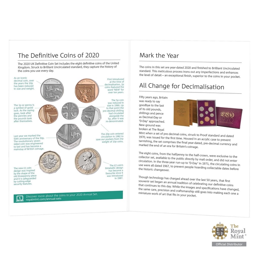 Britská měna je nejstarší stále používanou měnou na světě a zároveň patří k těm nejrespektovanějším. Kompletní sadu kovových platidel ostrovního království roku 2020 předkládá kolekce královské mincovny The Royal Mint.