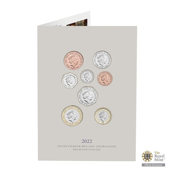 Kombinované reliéfy reverzních stran šesti pencí (50, 20, 10, 5, 2 a 1 p) odhalují majestátní státní znak. Jednolibrová mince nese na reverzu anglickou růži, velšský pór, skotský bodlák a severoirský jetel – rostlinné motivy symbolizující čtyři národy Spojeného království. Reverzu dvoulibrové mince pak vévodí zosobnění Britannie s přilbou, štítem a trojzubcem. Averzní strany ražeb patří portrétu královny Alžběty II. z profilu, roku emise 2022 a zkrácenému latinskému nápisu, který lze přeložit jako „Alžběta II., z Boží milosti královna, ochránkyně víry“.