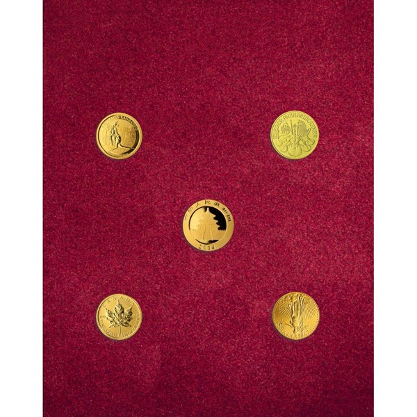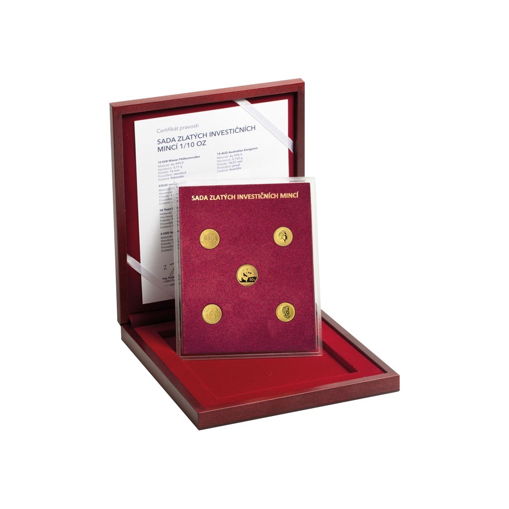 Sada 5 světových mincí s nominální hodnotou, z nichž každá obsahuje 1/10 unce ryzího zlata, se skládá z následujících titulů: