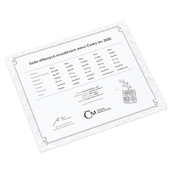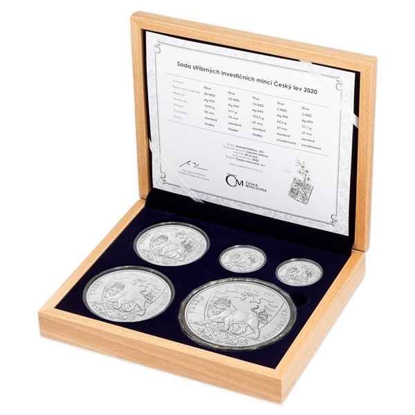 Každá mincovní velmoc má své investiční mince. Protože Česká republika dosud vlastními ryze investičními ražbami nedisponuje, jsou tu investiční mince České mincovny vydávané v zahraniční licenci. „Čeští lvi“ vycházejí v řadě variant a v luxusní sadě s ročníkem 2020 najdete ucelený komplet pěti stříbrných ražeb nejrůznějších hmotností.