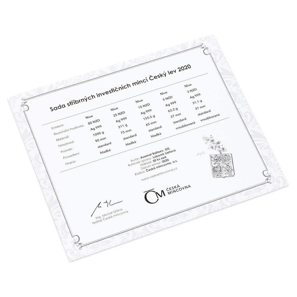 Sada stříbrných mincí Český Lev 2020 - 1oz, 2 oz, 5 oz, 10 oz, 1 kg