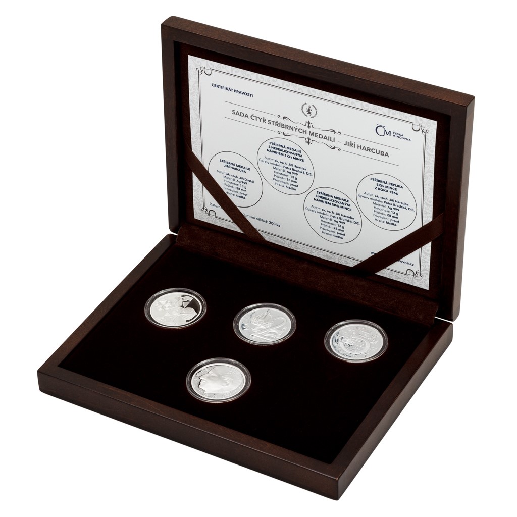 V roce 2018 si připomínáme 90. výročí narození a 5. výročí úmrtí akademického sochaře Jiřího Harcuby. Světově proslulému umělci a jeho nezaměnitelnému stylu vzdává hold pamětní sada čtyř stříbrných ražeb České mincovny.