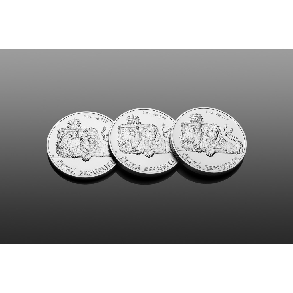 Mince České mincovny „Český lev“ jsou první ryze investiční mince ražené v České republice. Vycházejí v zahraniční licenci a jsou dostupné v řadě hmotností, mezi kterými pochopitelně nemůže chybět jedna trojská unce ryzího stříbra. Praktický investiční set se skládá ze tří uncových stříbrných mincí.
