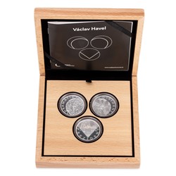 Mimořádná emise pamětní sady stříbrných medailí, kterou Česká mincovna vydává u příležitosti nedožitých 80. narozenin Václava Havla, představuje jednu z nejvýraznějších osobností naší historie ve třech odlišných úlohách dramatika, disidenta a prezidenta.