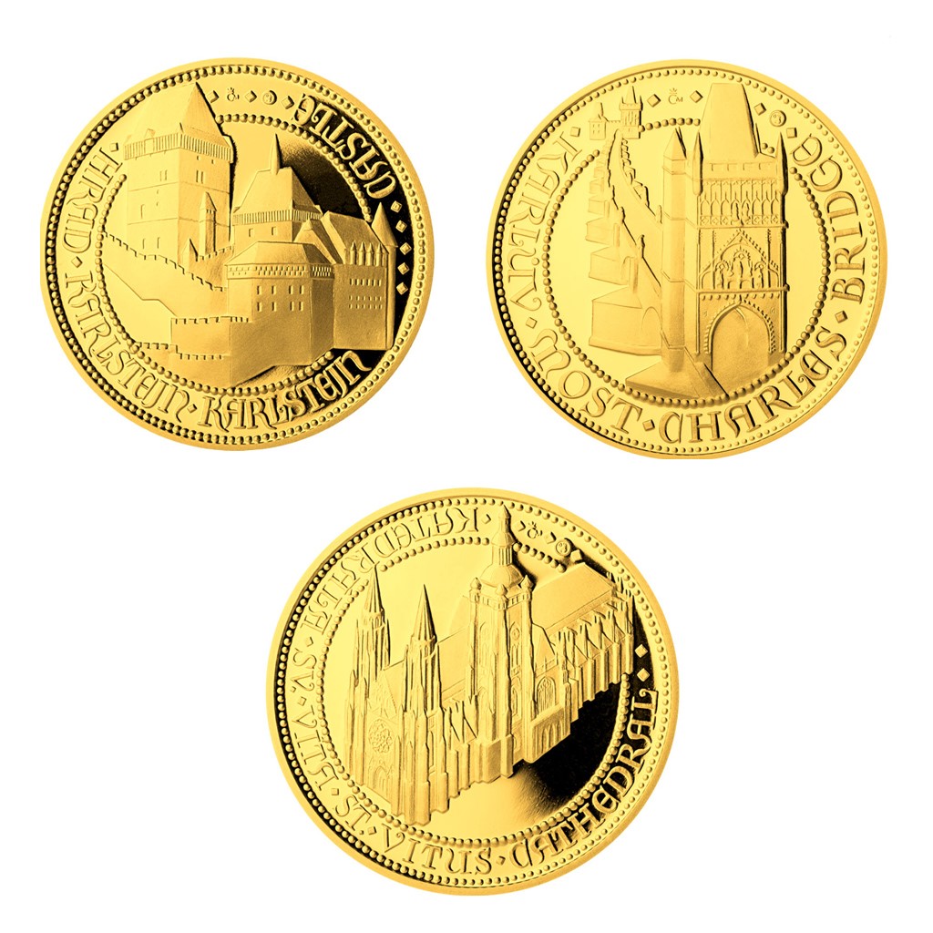 Sada tří stříbrných pozlacených medailí Doba Karla IV. proof
