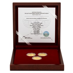 Sada tří zlatých mincí 100 let od konce první světové války proof